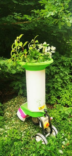Drehstrom Gartenhäcksler für Aststärken bis 4 cm. Kraftvoller Motor und schneller Durchsatz von Ästen und Gestrüpp. Das Gerät benötigt einen 400V Drehstromanschluss.